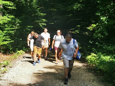 Am Kloster angekommen, setzten wir uns in den wunderschönen Innenhof und genossen das entspannte Ambiente. Jetzt gab es endlich die Belohnung für die Wanderung. Vom klassischen Wiener Schnitzel bis zum Pilgerpfandl gab es feinste Gerichte für jeden Geschmack. Bei der gemütlichen Klosteratmosphäre und einem schönen kalten Klosterbier schmeckten die Gerichte natürlich umso besser. Zum Nachtisch gab es dann einen leckeren Kaiserschmarrn mit Apfelmus oder verschiedene Kuchensorten.